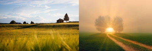 The colour of the light is different in summer (left) than in autumn (right). Plants are completely adapted to that.
