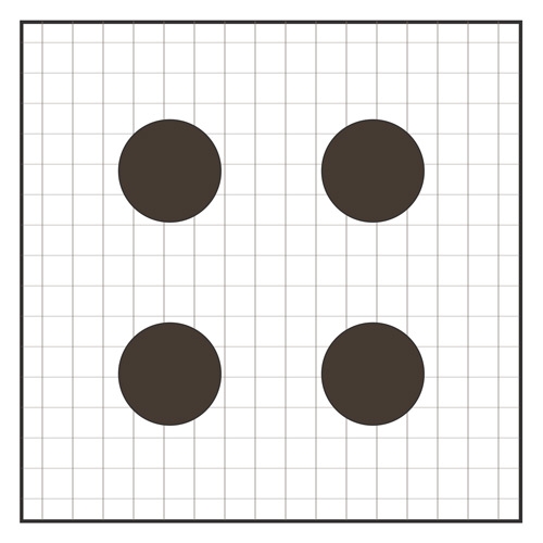 Often several plants are put together to fill a growing space completely. So it is quite possible to set up a number of plants under the same large ScrOG net. Our advice is to even out the space between the pots and the walls. Seen from above, it is just like a gas cooker. If you place one plant in the middle of the growing space, then for four plants place the pots approximately as in the picture below. Then you make the best use of the available surface area.
